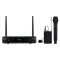 Formado por un receptor doble y dos transmisores, un micrófono de mano y uno de petaca. El micrófono inalámbrico de mano tiene cápsula dinámica unidireccional que maximiza la captación directa de la voz y rechazo de ruidos y sonidos indirectos. Y transmisor de petaca con micrófono de solapa con eficiente captación de la voz.